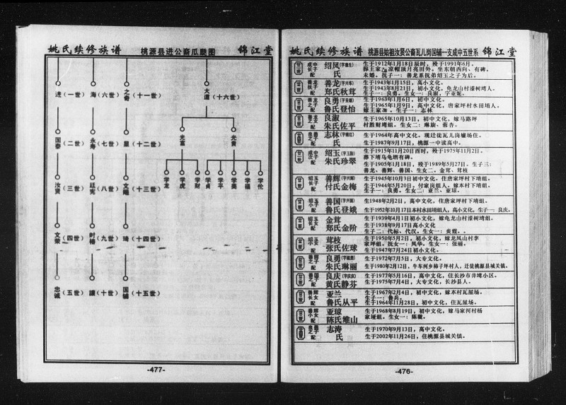 [湖南桃源]姚氏族谱     先祖进,明代人。
