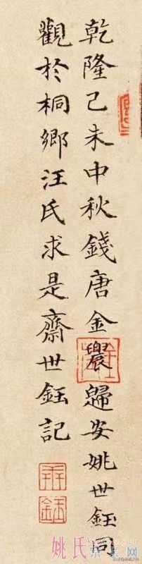 pszyyao 发表于 2022-9-24 15:39 己未中秋,姚世钰与金农于汪氏求是斋观《五牛图》并作题记:“乾隆己未中秋,钱塘金农、归安姚世钰观于桐乡汪氏求是斋。世钰记。” |